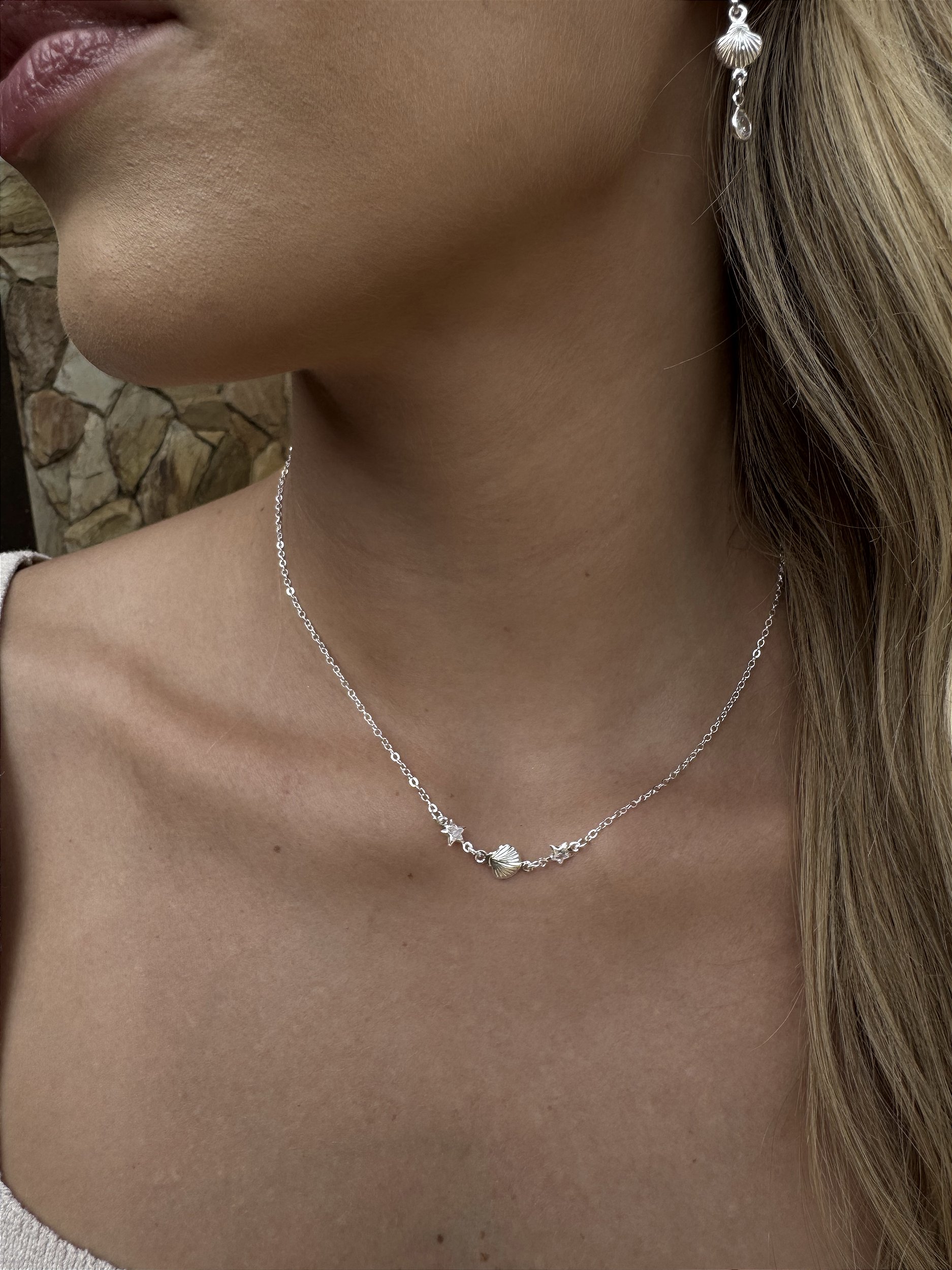 Choker estrela concha • folheado a prata