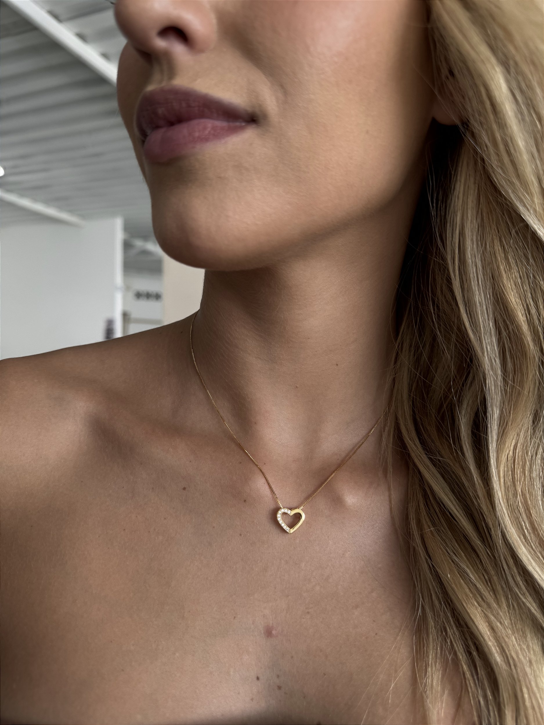 Colar metade coração zircônia • folheado a ouro