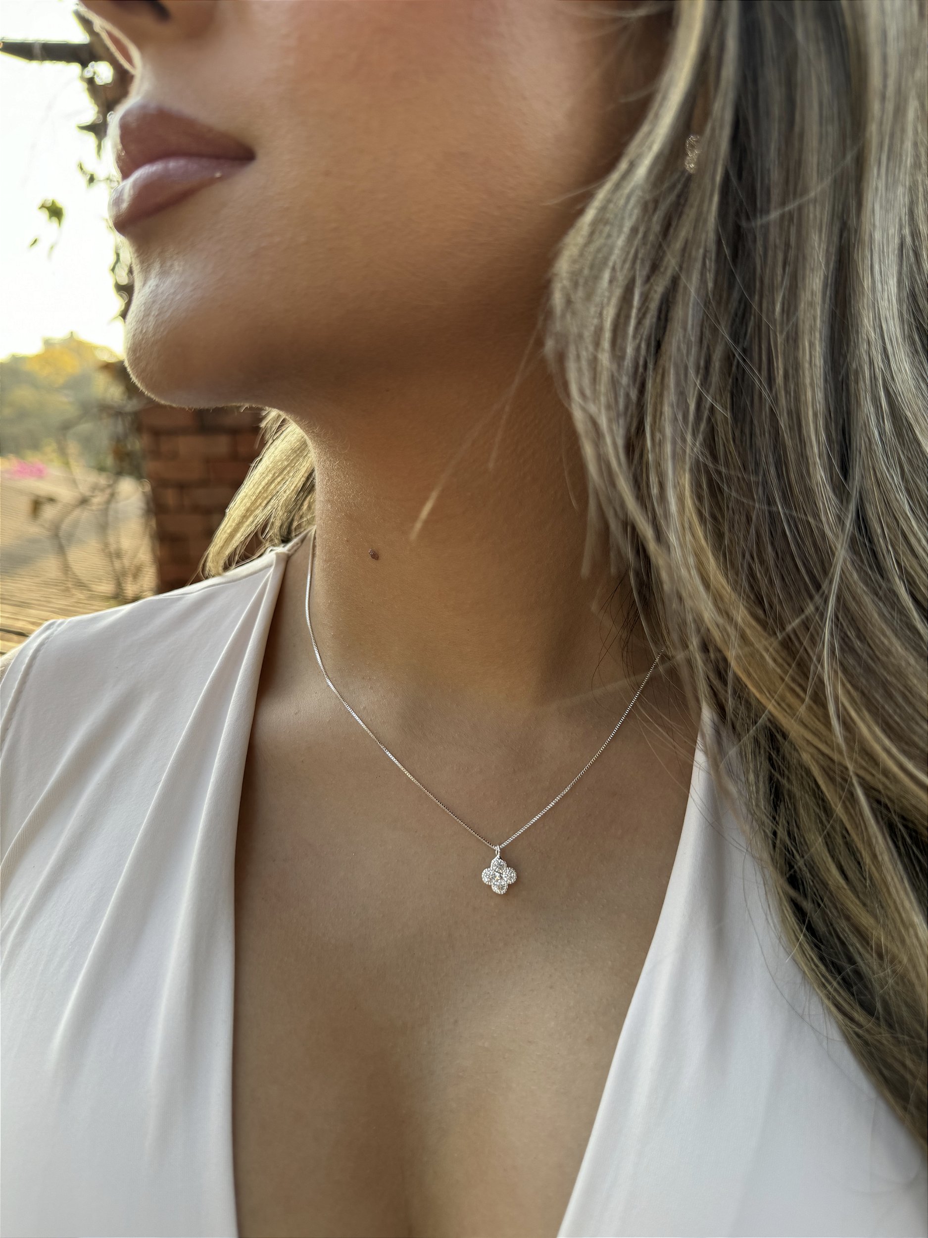 Colar trevo zircônia • folheado a prata