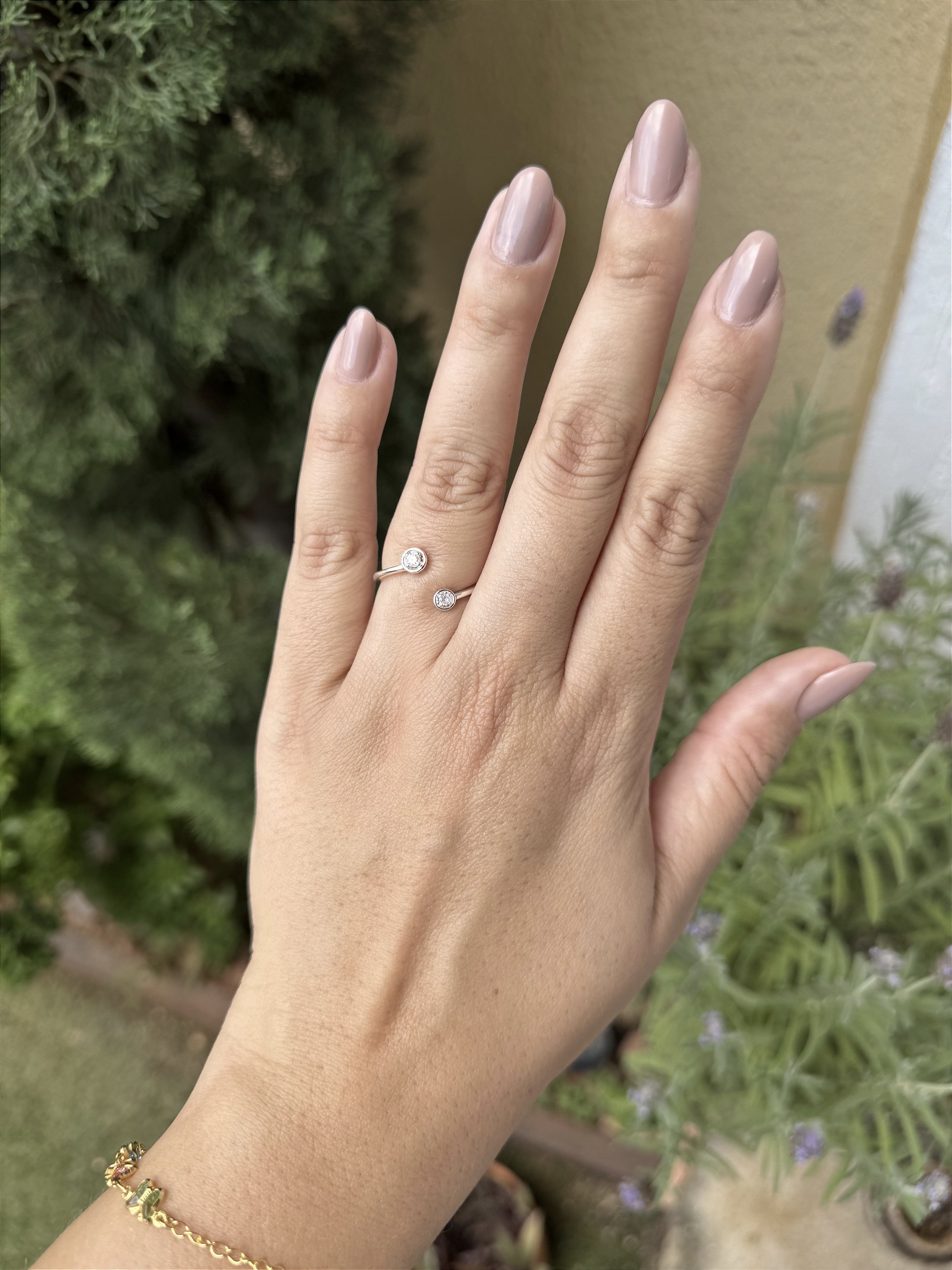 Anel solitário duplo • folheado a prata