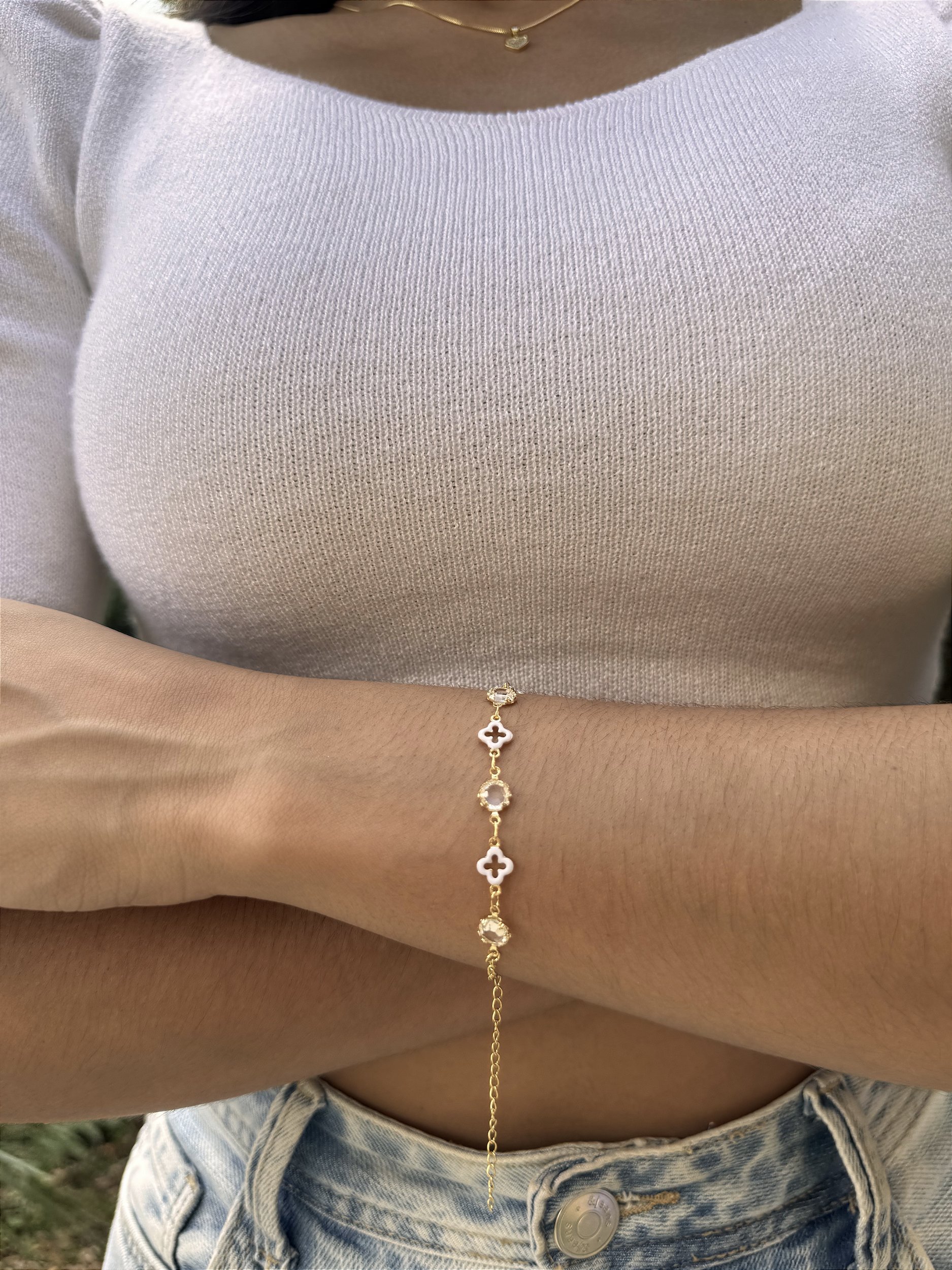 Pulseira tifany trevo branco • folheado a ouro