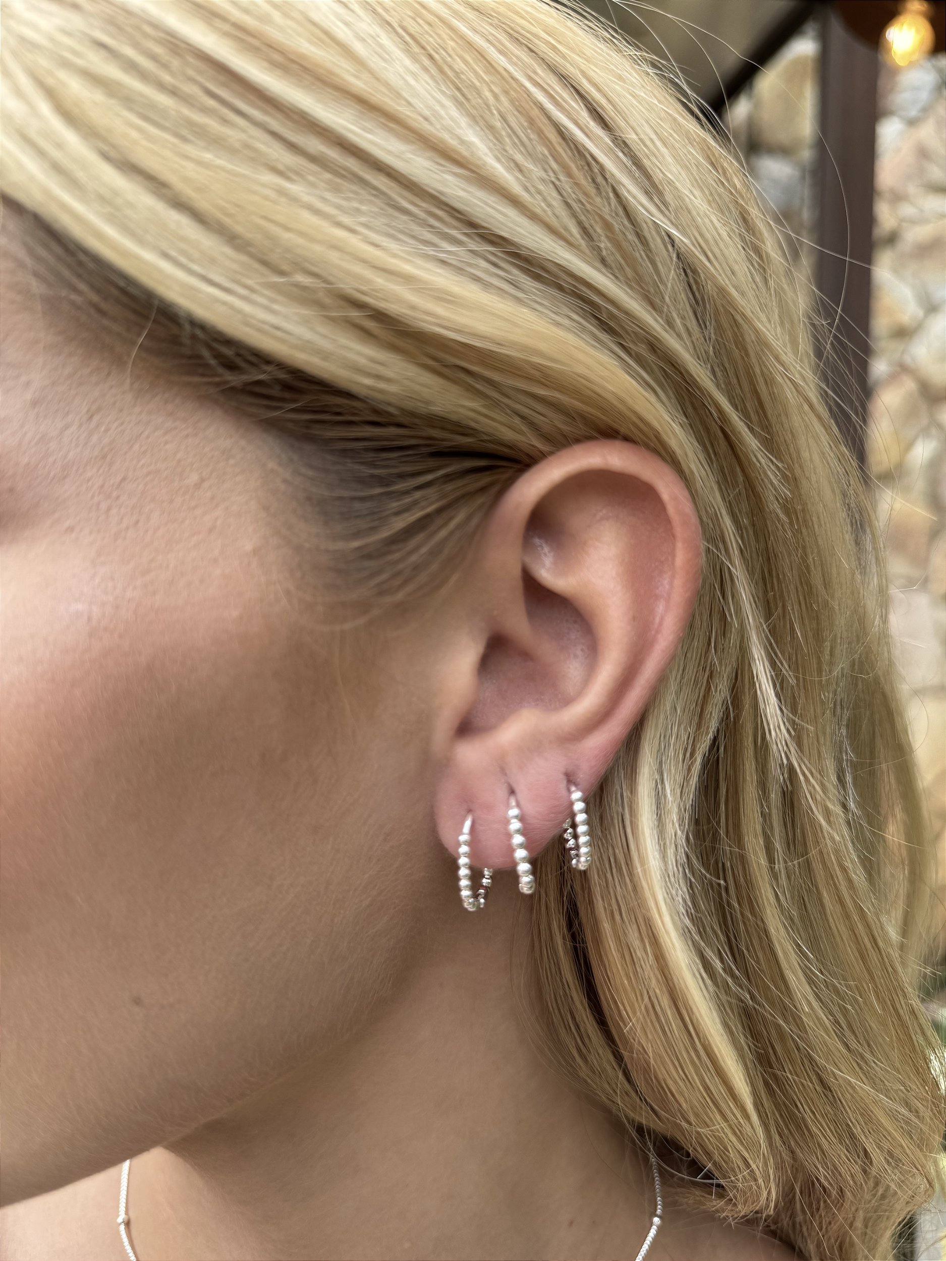 Trio argolas bolinhas oval • folheado a prata